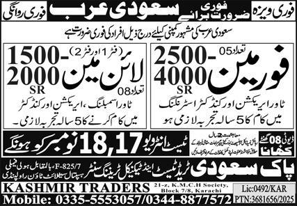Pak Saudi Trade Test & Technical Training Center Jeddah, jeddah Saudi Arabia invites applications from eligible candidates for the post of foreman and line man as per advertisement of November 10, 2025 published in daily Express Newspaper. Preferred Education is Middle and Matric etc.