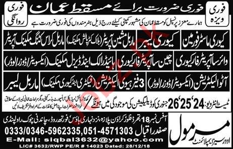 Latest Marmol Overseas Employment Labor Posts Muscat 2025