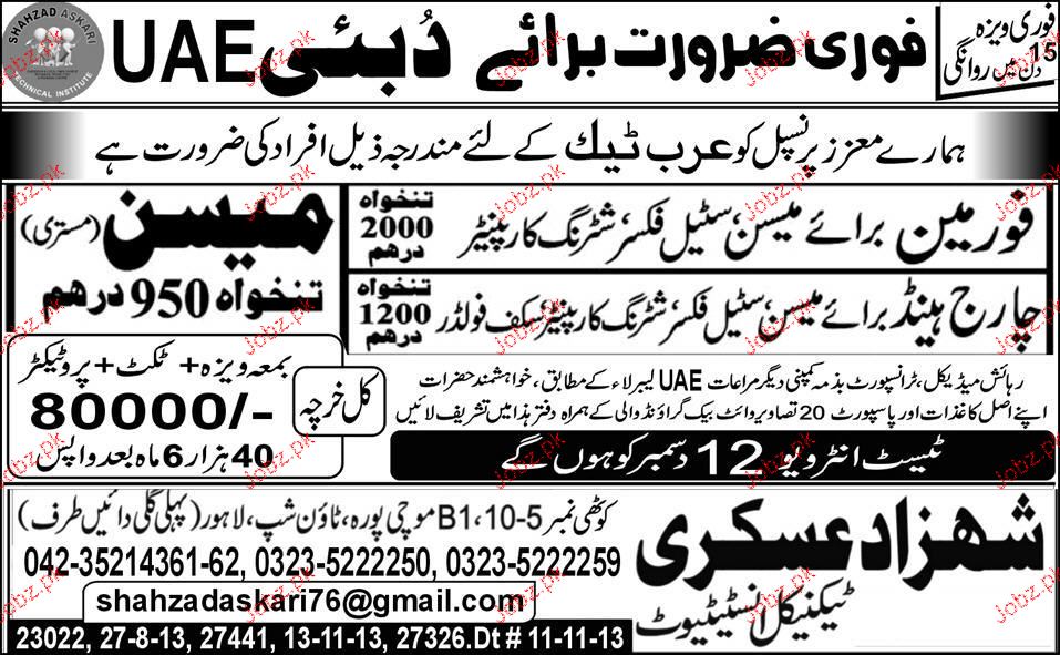 Apply as per details in job advertisement. Login to view further details of how to apply via https://www.jobz.pk online.