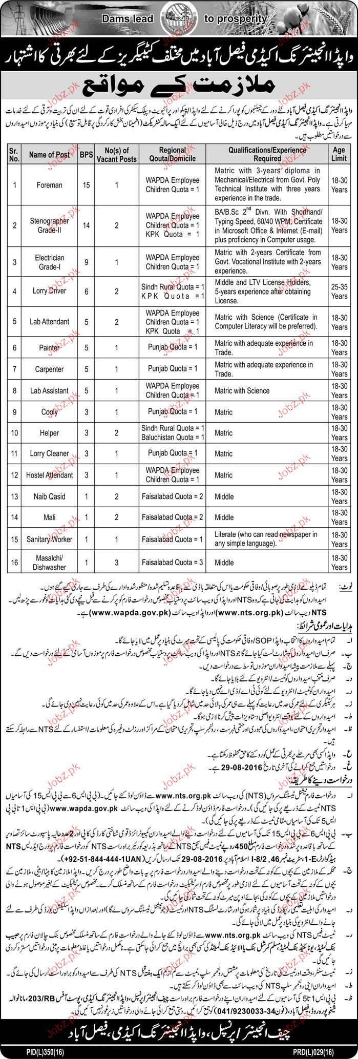 Latest Water and Power Development Authority WAPDA Engineering Posts Faisalabad 2025