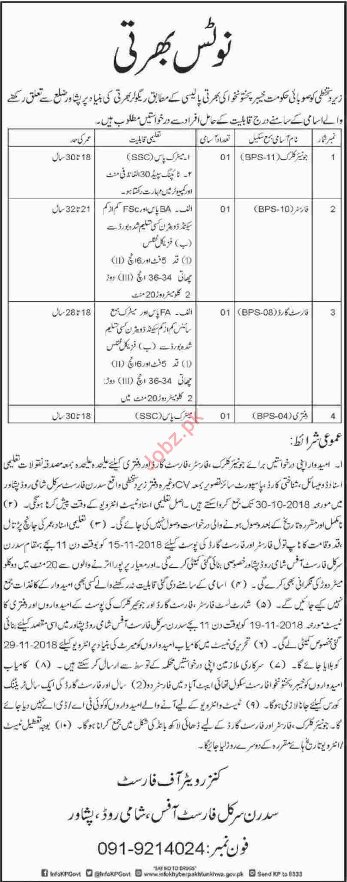 Forest Department Peshawar Jobs for Clerk & Forester