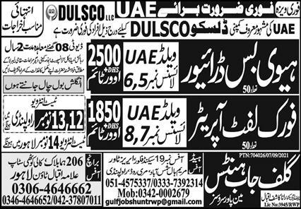 Fork Lift Operator & Heavy Bus Driver Jobs 2021 in UAE