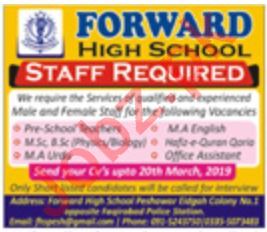 Forward High School Jobs 2019 in Peshawar KPK