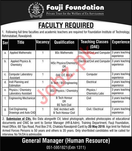 Vacancies in Fauji Foundation Institute of Technology Advertisement May 2019
