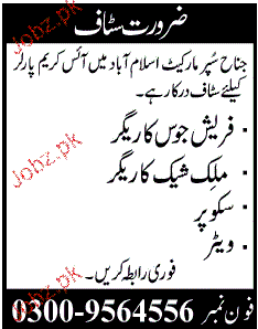 Fresh Juice Maker, Milk Shake Karigirs and Waiters Wanted