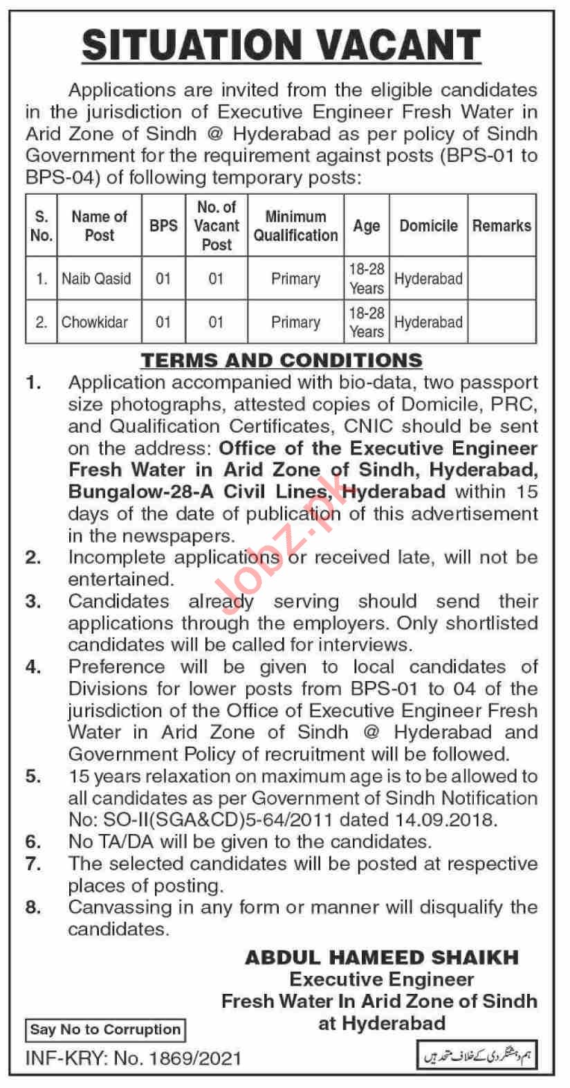 Fresh Water In Arid Zone Of Sindh Hyderabad Jobs 2021