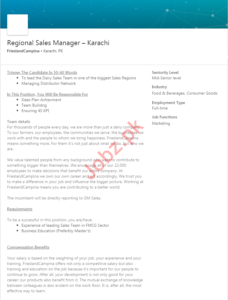 FrieslandCampina Karachi Jobs For Regional Sales Manager