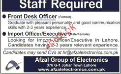 Apply as per details in job advertisement. Login to view further details of how to apply via https://www.jobz.pk online.