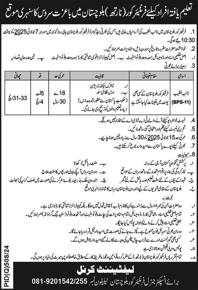 Frontier Core FC Balochistan Jobs 2025 for Naib Khateeb