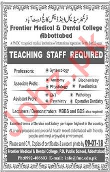Frontier Medical & Dental College Abbottabad Jobs 2018