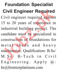 Frontier Platinum Jobs 2021 For Civil Engineer