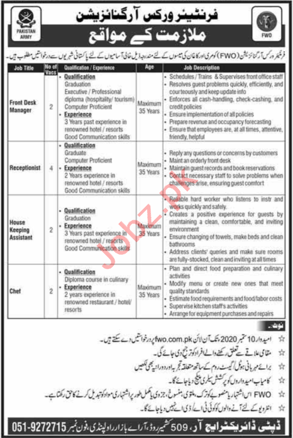 Vacancies in Frontier Works Organization FWO Advertisement August 2020