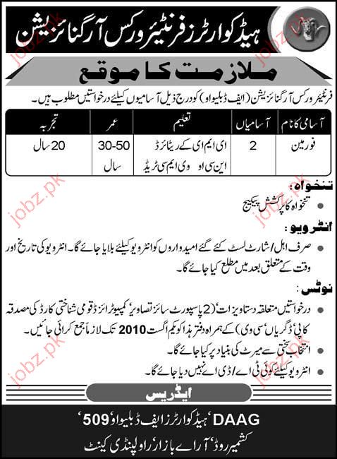 Apply as per details in job advertisement. Login to view further details of how to apply via https://www.jobz.pk online.