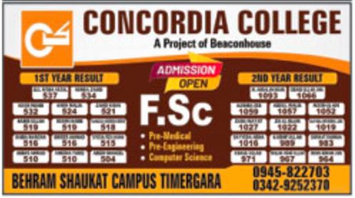 Concordia Colleges fsc admissions 2025 has been announced. Eligible students can apply for academic admissions 2025 in Concordia Colleges Lahore Punjab Pakistan for Science College. Students for admissions in can apply for online or campus classes as per Government institute criteria till admission closing date. Read newspaper ad for exact details.