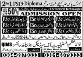 FSc and Diploma Program admissions at The Quaid e Azam Institute of Medical