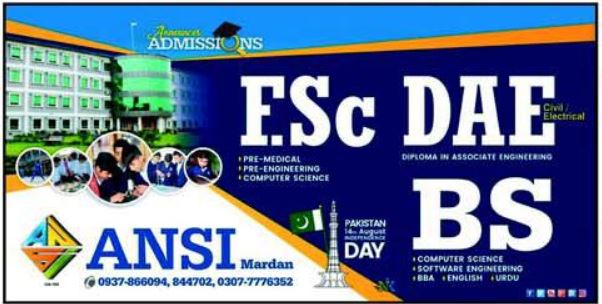 FSc, DAE and BS admissions at ANSI Degree College Mardan