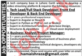 Latest Tech Company IT Posts Lahore 2025