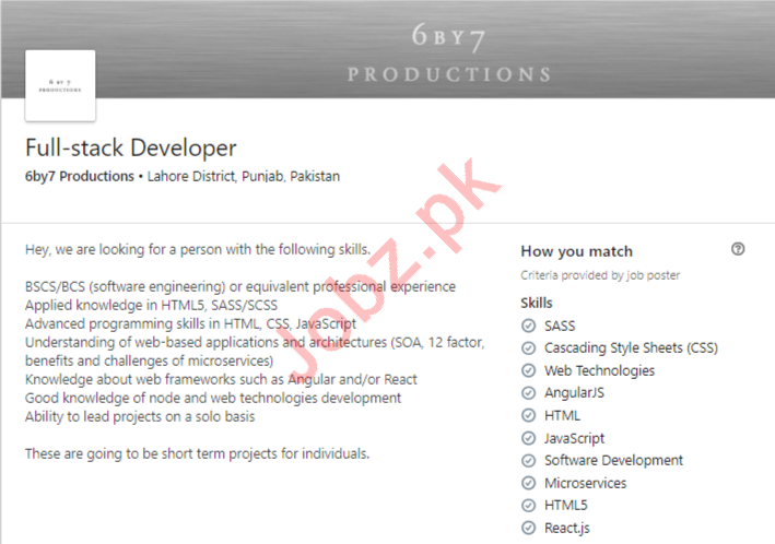 Apply as per details in job advertisement. Login to view further details of how to apply via https://www.jobz.pk online.