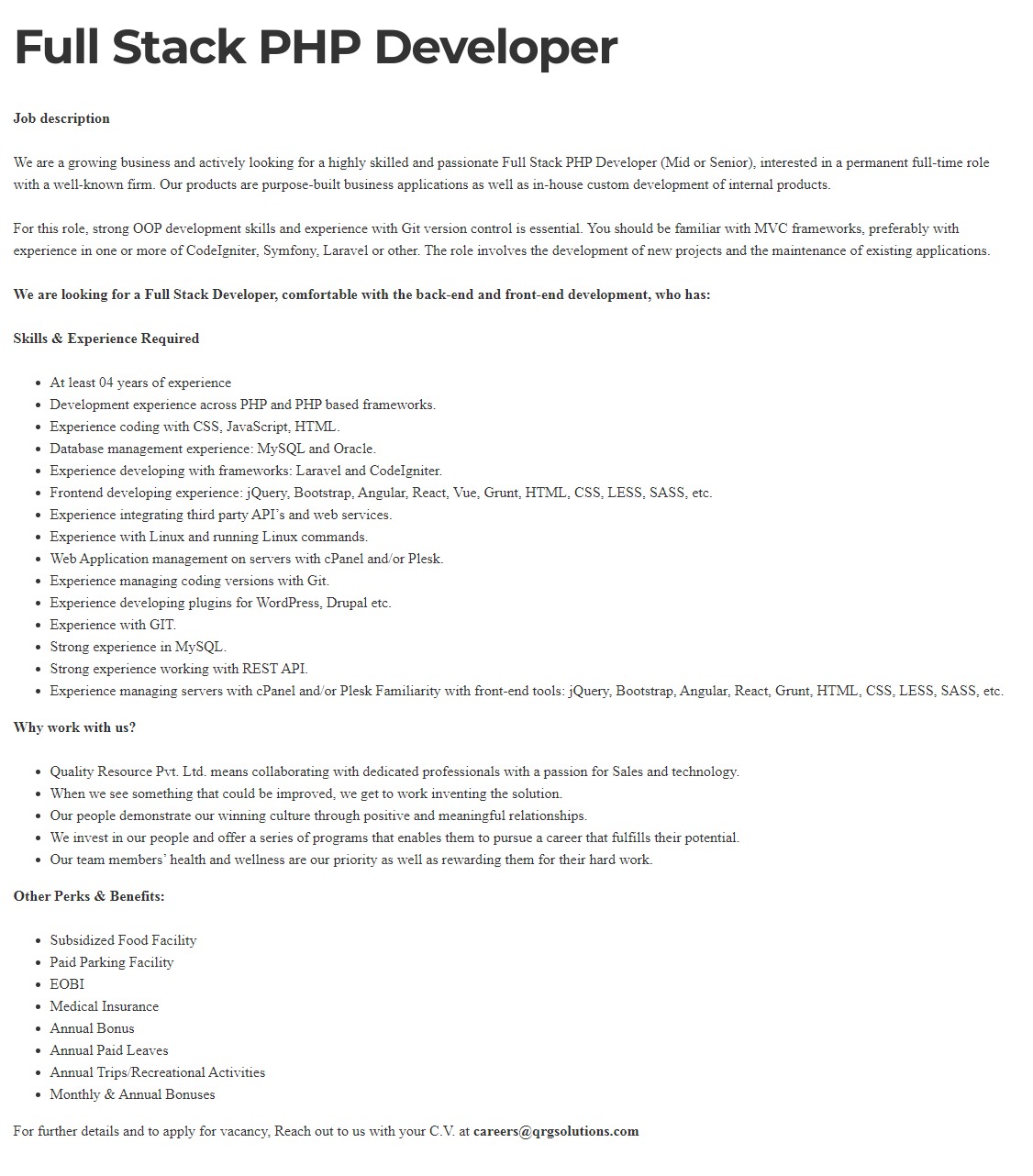 Original Source: https://qualityresourcepvt.com/jobs/full-stack-php-developer/