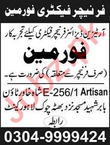 Furniture Factory Foreman & Designer Jobs 2020 In Lahore