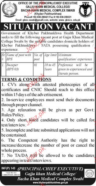 Latest Gajju Khan Medical College Labor Posts Swabi 2025