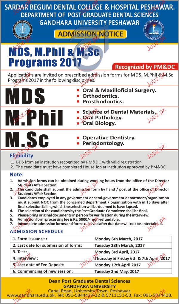 Gandhara University Peshawar Admission in Mphill and MSc in Peshawar. Read newspaper ad for exact details.