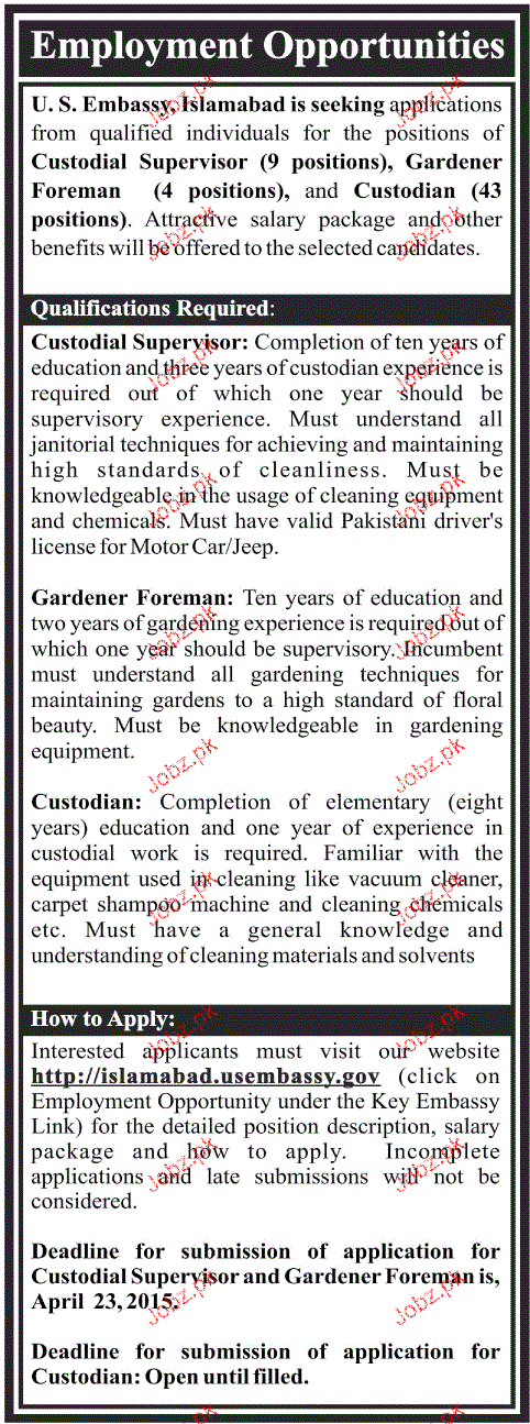 Apply as per details in job advertisement. Login to view further details of how to apply via https://www.jobz.pk online.