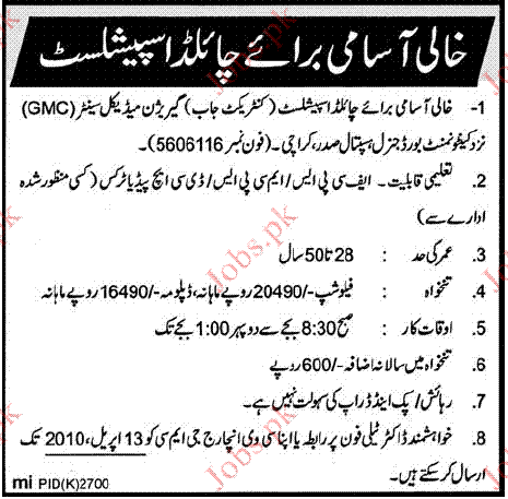 Apply as per details in job advertisement. Login to view further details of how to apply via https://www.jobz.pk online.