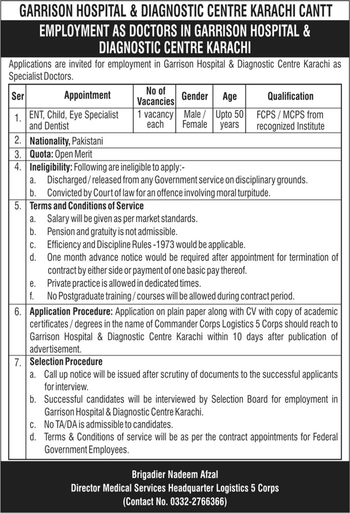 Latest Garrison Hospital & Diagnostic Centre Medical Posts Karachi 2025