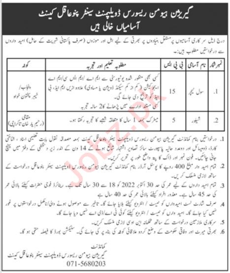 Vacancies in Garrison Human Resource Development Center Advertisement October 2022