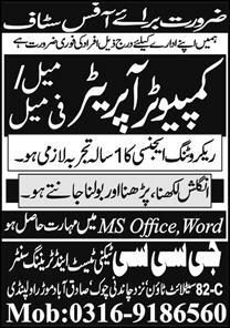 GCC Techni Test & Training Center Rawalpindi, rawalpindi Punjab Pakistan invites applications from eligible candidates for the post of male staff, female staff and computer operator as per advertisement of July 8, 2025 published in daily Express Newspaper. Preferred Education is Matric and Intermediate etc.