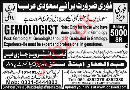 Vacancies in Abdul Ghaffar & Sons Advertisement November 2020