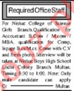 Apply as per details in job advertisement. Login to view further details of how to apply via https://www.jobz.pk online.