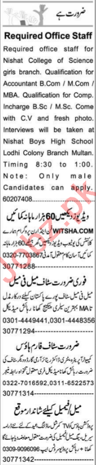Apply as per details in job advertisement. Login to view further details of how to apply via https://www.jobz.pk online.