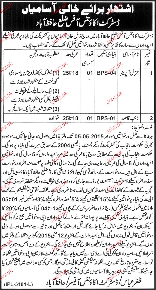 Latest District Government Admin Clerical Posts Hafizabad 2025