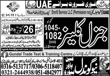 New Gondal Manpower Bureau jobs advertisement dated about 25 October 2022 in daily Express Newspaper invites application for the vacant post of general cleaner and cleaner in Abu Dhabi, sharjah UAE. Middle and Matric etc. educational qualification will be preferred.