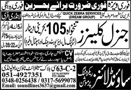 Vacant posts including general cleaner are announced in Sound Lines Recruiting Promotion Bahrain, bahrain Bahrain as per 13 December 2023 advertisement in daily Express Newspaper. Candidates with Middle etc. educational background will be preferred.