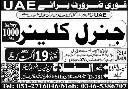 New Al Falah Trade Test & Training Center is looking for candidates for following posts as per job advertisement published in daily Express Newspaper of August 15, 2024 for location Abu Dhabi, sharjah UAE: