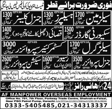 Latest AF Manpower Overseas Employment Promoters Management Posts Qatar 2025