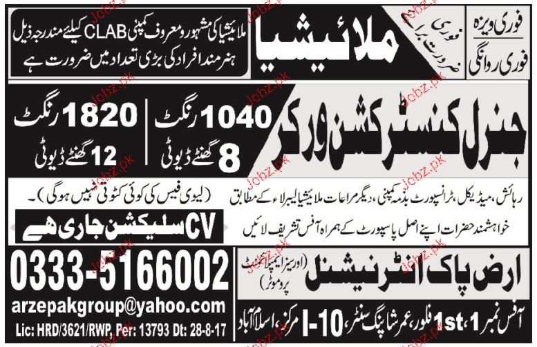 Apply as per details in job advertisement. Login to view further details of how to apply via https://www.jobz.pk online.