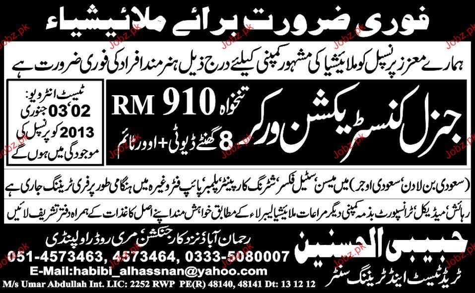 Apply as per details in job advertisement. Login to view further details of how to apply via https://www.jobz.pk online.