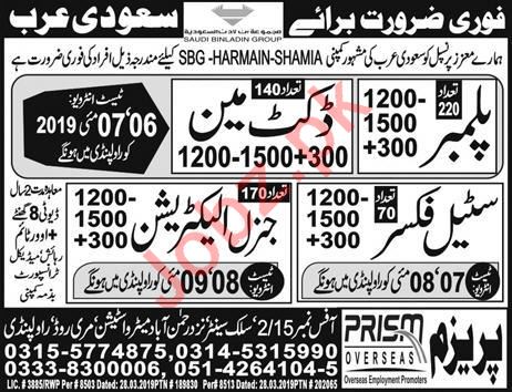 Latest Prism Overseas Employment Promoters Labor Posts Saudi Arabia 2025