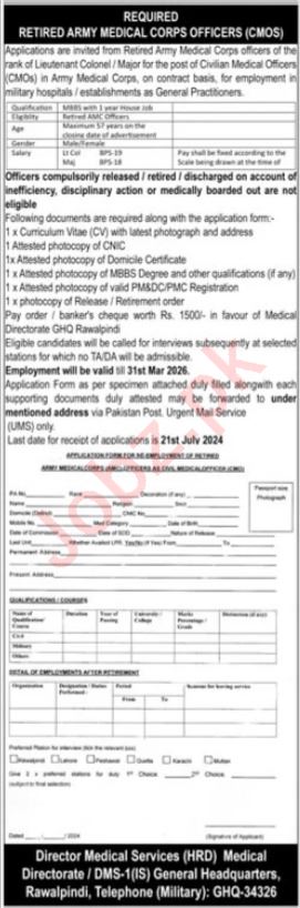 General Head Quarter GHQ latest Government Medical jobs and others can be applied till July 21, 2024 or as per closing date in newspaper ad. Read complete ad online to know how to apply on latest General Head Quarter GHQ job opportunities.