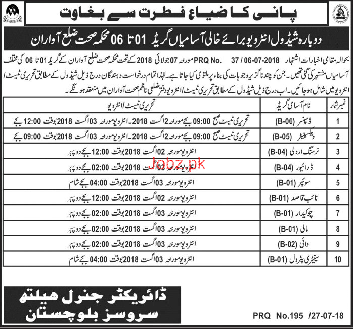 Latest Directorate General Health Services Medical Posts Quetta 2025