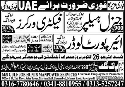 MS Gulf Job Hunts Manpower Services OEP is looking for candidates for following posts as per job advertisement published in daily Express Newspaper of October 22, 2023 for location Abu Dhabi, abu dhabi UAE: