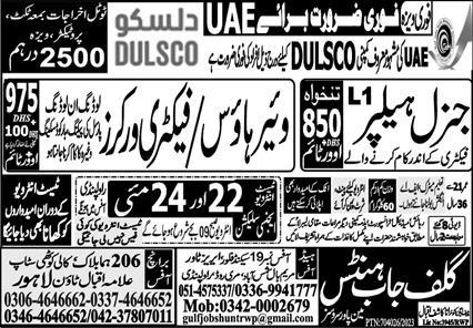 Gulf Job Hunts Manpower Services is looking for candidates for following posts as per job advertisement published in daily Express Newspaper of May 21, 2023 for location Abu Dhabi, abu dhabi UAE: