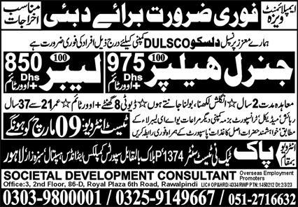 Societal Development Consultant jobs advertisement dated about 4 March 2023 in daily Express Newspaper invites application for the vacant post of general helper and labor in UAE, dubai UAE. Middle etc. educational qualification will be preferred.