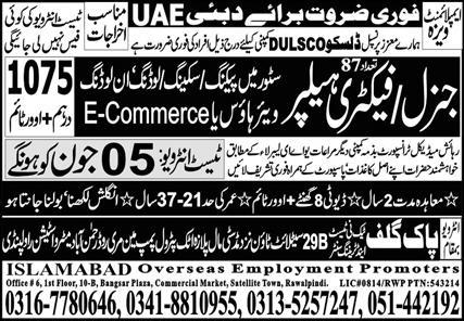 General Helper & Factory Helper Jobs 2023 In UAE