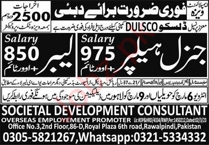 Societal Development Consultant jobs advertisement dated about 5 March 2023 in daily Express Newspaper invites application for the vacant post of general helper and labor in Dubai, dubai Dubai. Persons with Middle, Matric and Primary etc. education can apply.