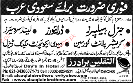 General Helpers, Drivers, Land Surveyors Job Opportunity